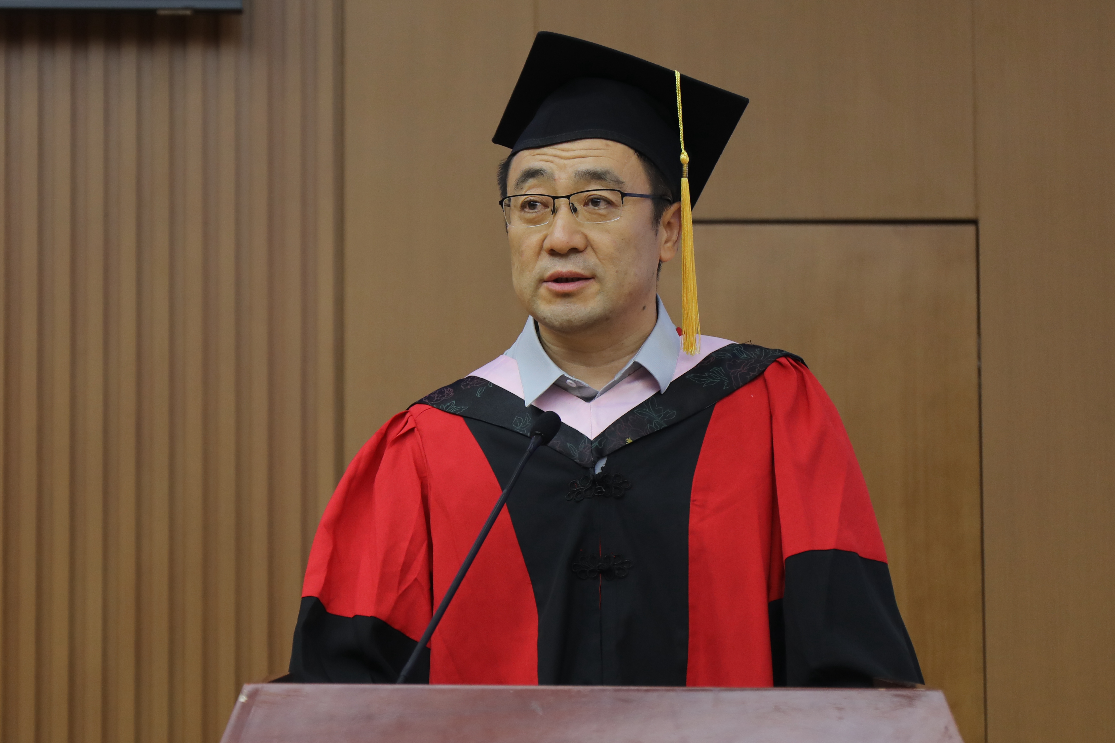 在热烈的掌声中,麻宝斌教授发表讲话。他首先代表漫画人 向顺利完成学业的同学们表示热烈祝贺,向悉心培育、关心支持同学们的导师和所有付出辛劳的教师表示衷心感谢。他指出,对于成功人们并没有一致的看法,仁者见仁,智者见智。同时,从“何为成功”和“如何成功”,将成功分为三重境界,分享了几点思考和对同学们的期待。第一重境界是个人意义上的成功,成功首先要具有稳定的价值观、强大的内核,也就是“心力”,即一个人的心理能量和精神力量。第二重境界是社会意义上的成功,要具有清晰的人生观——重新确立人与人之间的关系,社会成功不能靠个人单打独斗,而是要靠团队合作去造福社会。第三重境界是精神意义上的成功,要精神觉醒,真正认识到自己与世界的关系,明确自己的人生使命。最后他对同学们提出三点嘱托:一是要为自己书写自己的人生剧本,而不是按照别人的剧本生活;二是当面临人生关键选择时,要把“向下扎根,向上开花”作为人生方向,要把“向内成长,向外奉献”作为人生主线,要把“守住底线,不设上限”作为人生信条。三是要遵从内心的召唤,勇敢地去做真正热爱且擅长的事,长风破浪会有时,直挂云帆济沧海!