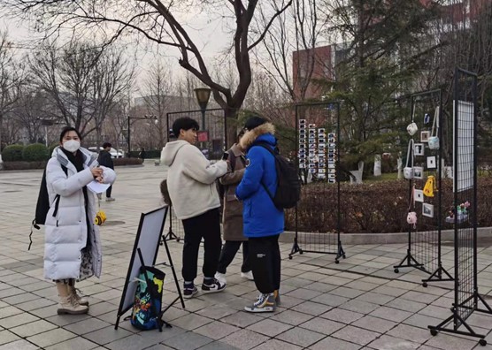 首先是展览布置,在获得学校相关部门同意后,赵紫源同学、王正同学、李屹宗同学率先前往会场第三食堂前广场布置展览。