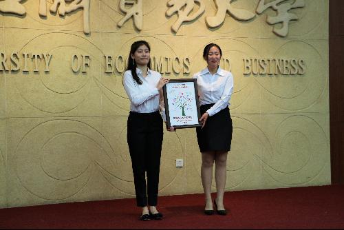 “奥力特”励志奖学金获奖者展示感恩礼物