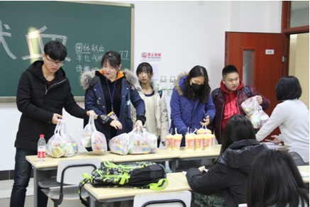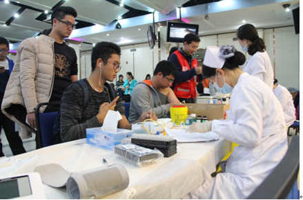 经过一系列反复确认,志工部成员于中心准备验血。干事们负责组织同学们排队验血,并为排队等待的同学们送去了温暖的红糖水,部长们负责统一分发验血结果。验血工作结束后,献血工作也正式拉开帷幕。