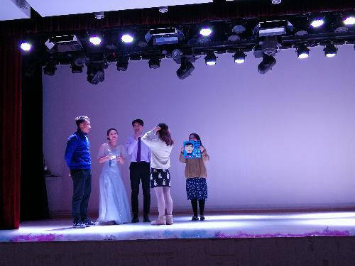 今年的晚会节目花样翻新,创意百出。晚会现场的“疯狂猜歌名”和“蒙眼贴五官”游戏非常火热,深受观众喜爱。由城院师生共同参与,游戏时而惊险刺激,时而轻松愉快、爆点频出,把本场晚会引向高潮。在接下来的节目里,既有由袁平和王争带来的欢快温暖的歌曲《一个像夏天,一个像秋天》,又有陈帆带来的美妙动听的竖笛独奏,既有行政管理专业全体带来令人感动的大合唱《夜空中最亮的星》,又有区域经济学专业所带来的抖音神舞《海草舞》。