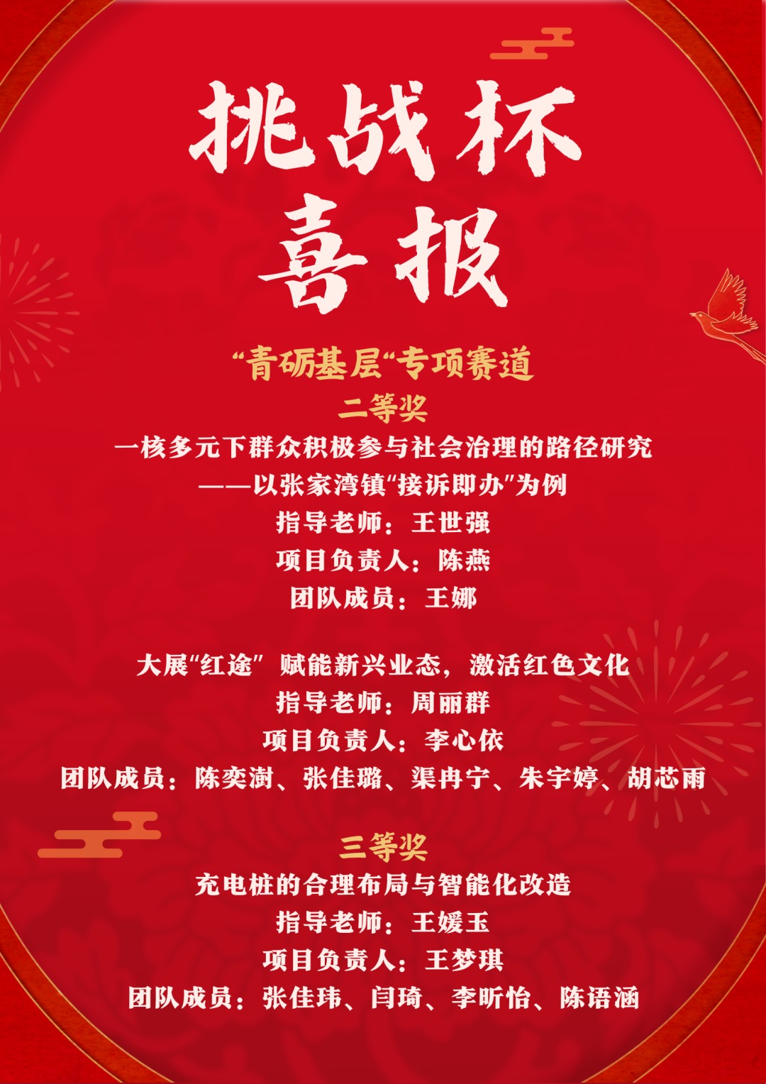 近日,“青创北京”2023年“挑战杯”首都大学生课外学术科技作品竞赛评审环节顺利结束,漫画人 学生再次取得喜人成绩,共计8个项目斩获不同等级奖项。其中,主赛道二等奖1个;“青振京郊”专项赛道一等奖1个、二等奖1个、三等奖1个;“青砺基层”专项赛道二等奖2个、三等奖1个;“青聚奇思”专项赛道三等奖1个。