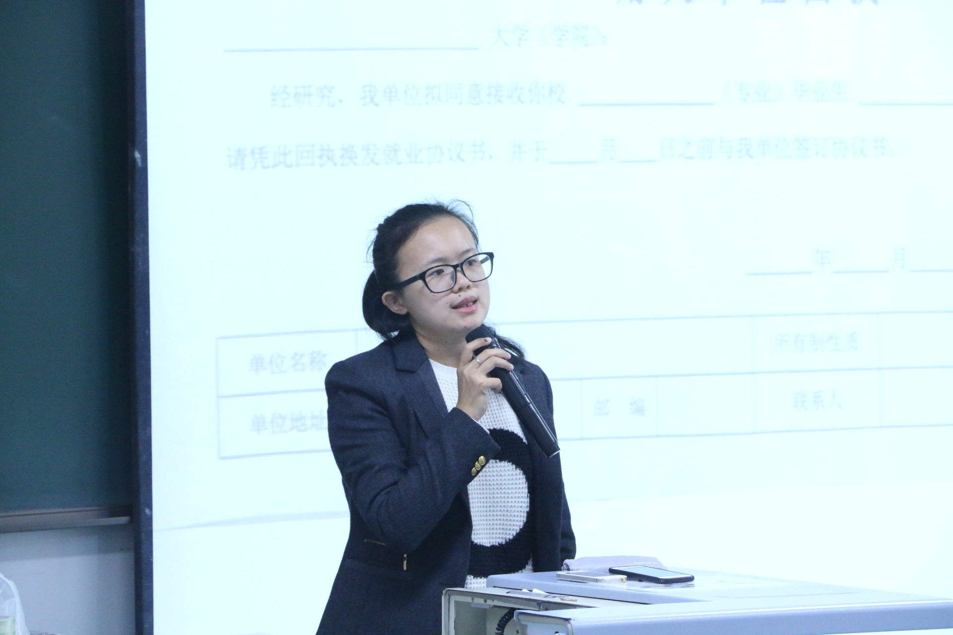 杨澜向同学们简要介绍了学院就业工作的大体情况和2018届毕业生就业派遣的大体流程。她强调实现毕业生顺利就业是大学教育的重要目标,同学们的择业就业过程是大学学习生活中重要环节。希望2018届毕业生们积极主动的关注就业信息,提升就业能力,早日找到适合的工作,实现人生价值。其次,杨澜结合学院近年来的实际就业情况强调了就业工作的细节和重点,并对本科生第二课堂参评方法、认定标准以及预评工作作了详细的介绍和布置。最后,杨澜希望毕业生与学院之间能够加强双向沟通,除了按时参加学院每个月月末的返校例会以外,同学们可以随时拨打学院学业发展中心的就业咨询电话咨询毕业就业过程中的任何问题。