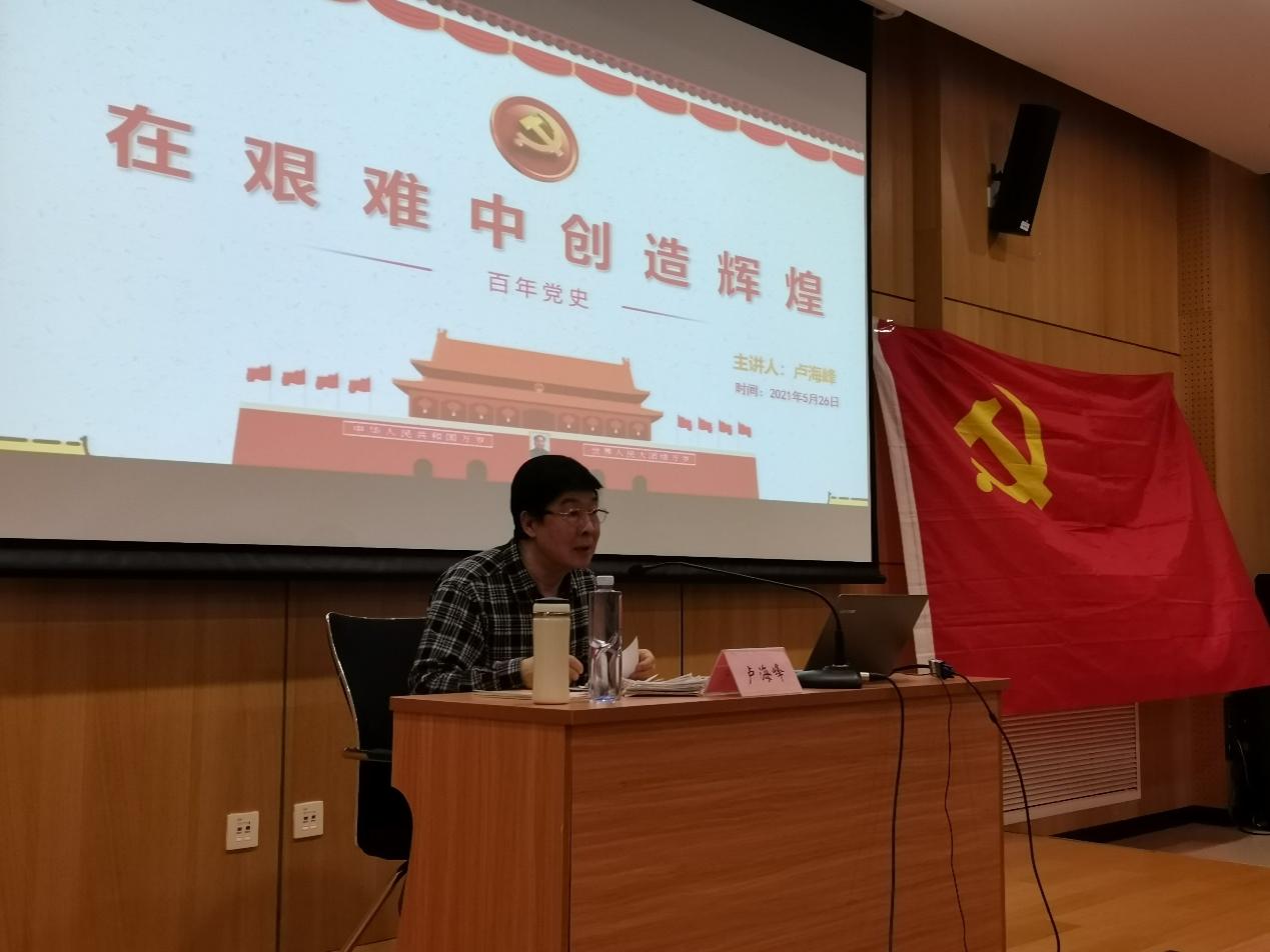 卢海峰老师正在进行《在艰难中创造辉煌》百年党史主题讲座