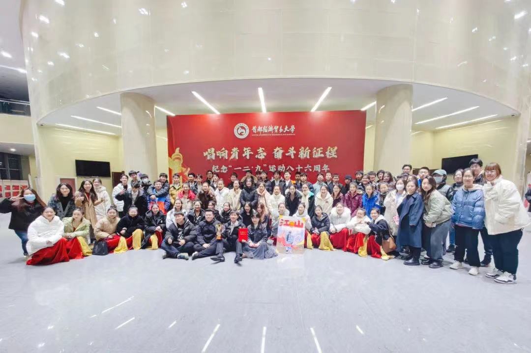 回望过去排练的一个多月,为了呈现出一场完美的视听盛宴,城市学院学生会联合学院各学生组织在声乐指导老师李老师的指导下,齐心协力,尽心尽力,从对演员的严格海选到简单的声乐训练,再到分声部专项训练,最后所有声部联排,编排动作,共排练了20余次,每一位城院人都倾情投入,不放过每一个细节。从钢琴伴奏到音乐伴奏再到清唱,演绎方式以及背景视频历经数次修改、完善,打磨再打磨,精益求精,最终合唱团以清澈干净的声音完满演绎了一曲波澜壮阔的绝美锦绣“江山”。城院学子一次又一次地超越自己,一次又一次地完成那些“不可能”的挑战。从初秋到寒冬,从博学楼到慎思楼再到琢玉讲堂,每一段时间,每一段距离,都铺满同学们的汗水和欢笑,流淌成壮美的《江山》。