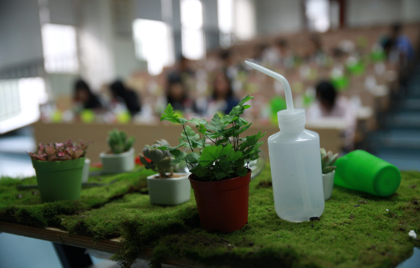 同学们认真制作多肉微景观