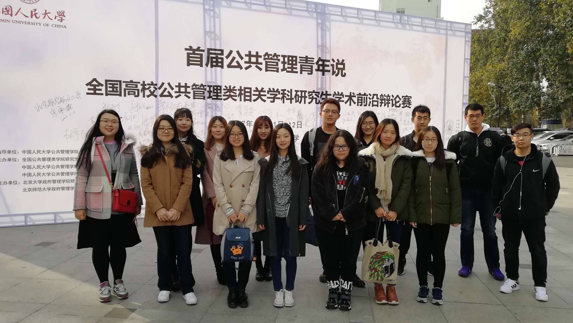 2017年11月12日,首届公共管理青年说——全国高校研究生公共管理学科学术前沿辩论赛总决赛在中国人民大学世纪馆北大厅会场举行。决赛由中国人民大学公共管理学院院长杨开峰教授和北京大学郁俊莉教授以及北京师范大学孙宇教授担任比赛评委。我校代表队与北京大学、华中科技大学、吉林大学组成的联队在与南京大学、西北工业大学、山东大学、东南大学、天津大学、四川大学、中央财经大学等全国知名大学的激烈角逐中,一路从晋级赛闯到决赛,最终荣获全国亚军。