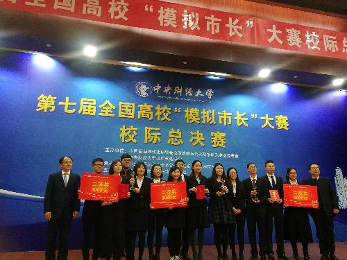 2017年11月25日下午,中国管理现代化研究会政府战略与公共政策研究专业委员会、中央财经大学政府管理学院联合主办,中央财经大学“未来公务员之家”德育示范基地承办的第七届全国高校“模拟市长”大赛校际总决赛,如期在中央财经大学(学院南路校区)学术会堂202隆重举行。
