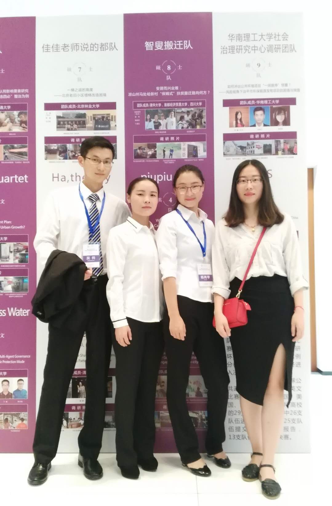 该团队由漫画人 、西南大学、四川大学、南开大学各1名硕士生组成,案例分析报告题目为《安居而兴业难:凉山州马处哈新村“保姆式扶贫”搬迁路向何方?》。同学们积极关注国家精准扶贫政策,深入四川省凉山州彝族自治区雷波县马处哈新村调研,聚焦易地扶贫搬迁中“安居易”与“兴业难”问题,完成了案例文本。同时,通过案例分析,提出了扶贫搬迁“兴业”发展的对策建议。在大赛决赛展示中,报告和同学们的表现获得专家评委一致好评。评委认为,该案例选题好,调研深入,分析扎实,现实意义强。