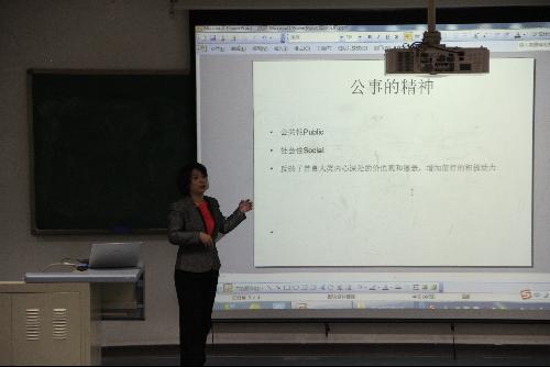 随后,公共事业系周琳老师上台宣讲。周老师主要就公事专业精神的前瞻性做了讲解。周老师认为:所谓公事精神即公共性和社会性,可以更好的体现善良的人的内心价值和良好愿景。而对于公共事业的前瞻性,周老师则言:主要是基于公事专业的通识教育和城市发展潜力对人才的需要。接着周老师拿出事先备好的小零食与同学们做积极的互动。同学们反响良好。