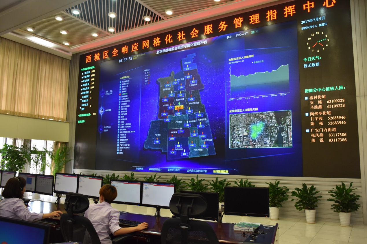 下午2:30,调研的老师及同学们准时到达西城区政府2号楼2713会商室。首先,陈国红主任为大家介绍了西城区全响应网格化社会服务管理指挥中心概况,播放了中心工作介绍短片,短片中大致介绍了管理指挥中心发展历程、四位一体城市管理模式及全响应模式等。接下来,由调研科、全响应科、网通科、分中心管理科及信息管理科值班干部及相关工作人员分别介绍了中心工作、全响应工作、城市运行管理平台、全响应系统及“随手拍”演示等。