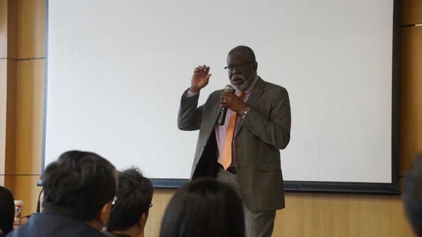下午15点30分,罗兰·安格林院长与鲍勃·格列森副院长在博远楼一号学术报告厅做交流讲座,城市学院王德起书记担任主持人。首先,王德起书记对两位院长的来访表示热烈的欢迎,并介绍了两位院长的学术背景及成就。