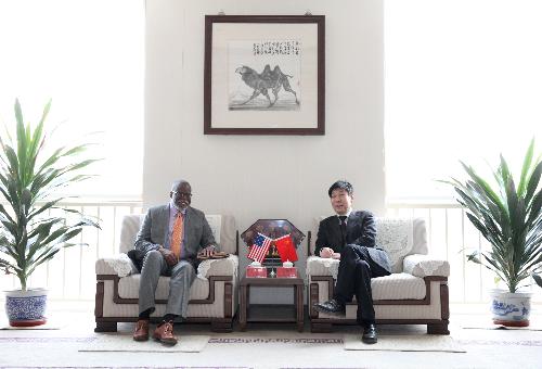 付志峰校长(右)会见克利夫兰州立大学城市事务学院院长罗兰·安格林