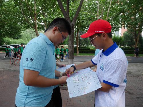 每个小组要按照之前印制好的搜索点,自由选取路线,在校园内寻找手持印章的志愿者,正确回答精心设计的问题,盖取印章后再到下一个点进行搜索,完成所有搜索点,顺利回到终点后还需要完成一项终极任务,即,所有新生用指纹和心愿卡共同绘制一副象征成长与智慧的“‘城’长‘知’树”作为新生礼物在开学典礼时送给学院,整个过程,完成时间短者获胜。