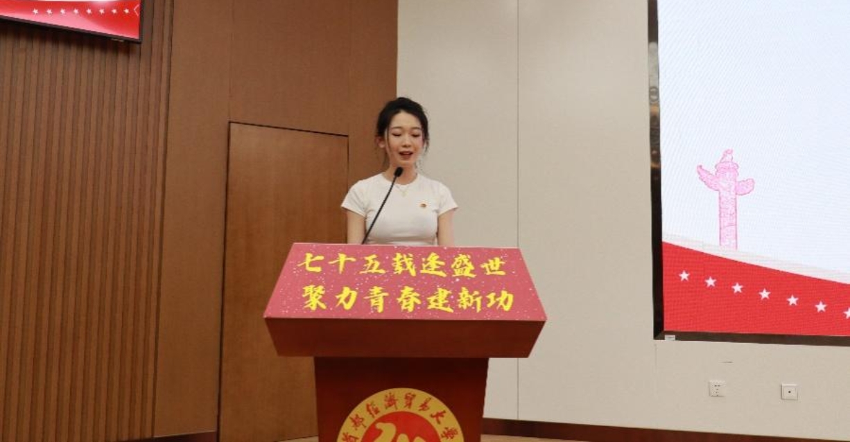 在展演期间,特设置了知识问答环节。学院团员青年积极参与,踊跃抢答,在答题过程中重温峥嵘岁月,感悟初心使命。看今日华夏,社会进步,政治稳定,人民安居乐业;望今日神州,经济发展,民族团结,国家兴旺发达。“有了强的国,才有富的家”,学院团员青年唱响《国家》,以歌声献礼新中国75周年华诞,祝愿江山不老,祖国常春!