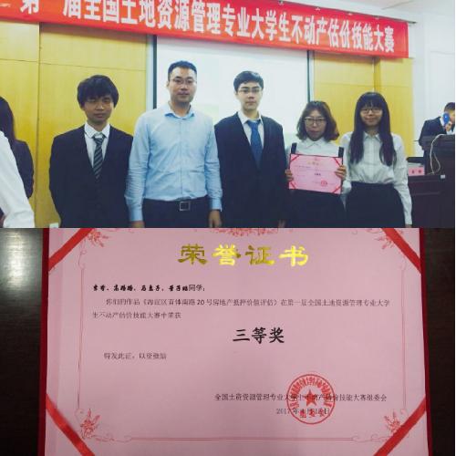 2017年4月15日第一届全国土地资源管理专业大学生不动产估价技能大赛在南京农业大学隆重举行,漫画人 土地资源管理系派出了由李哲、高路路、马惠子、董子昭同学组成的参赛团队,在吴庆玲、李强、王建强老师的指导下完成了作品“海淀区首体南路20号房地产抵押价值评估报告”,由王建强老师带队参加了本次大赛并荣获三等奖。 本次大赛由全国高等院校土地资源管理院长(系主任)联席会主办、南京农业大学公共管理学院承办,比赛选拔对象面向全国土地资源管理专业学生,旨在鼓励土地资源管理专业学生关注国内...