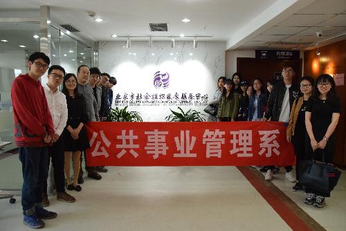 2017-04-252017年4月18日下午,2014级公共事业管理本科班和行政管理专业的4名硕士研究生在系主任冯浩老师和徐正老师的带领下,前往北京市社会组织发展服务中心参观学习。此次活动的目的是让大家对现实中的社会组织有更好的了解,实践与理论相结合,以便于更好的学习专业知识,并为接下来6月份的专业实习做准备。 图1 师生与中心工作人员合影 北京市社会组织发展服务中心(简称中心)是由北京市民政局举办,委托北京市协作者社会工作发展中心(简称北京协作者)运营的市级支持平台,为解决社会...