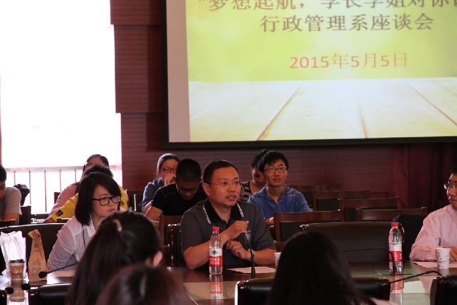 5月5日,行政管理系为12、13级的行政管理专业学生在博纳楼第七会议室举行了“梦想起航,学长学姐对你说”座谈会。座谈会上,学长学姐向同学们介绍了许多有价值的经验,使同学们有了更加明确的个人发展规划。座谈会由行政管理系刘智勇老师主持,行政管理系潘娜老师、学生工作办公室杨曦老师等参加了此次座谈会。 张杰副院长寄语行管系同学 座谈会首先由张杰副院长发言。张杰副院长借刚刚过去的五四青年节,向同学们表示了美好的祝愿。“世界是你们的,也是我们的,但是归根结底是你们的”,张杰老师希望同学们能够不断地...